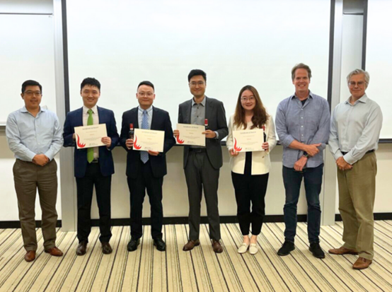 (Certificate holders of the winning team, left to right: Bowen Li, Lincoln Wu, David Liu, Kelly Liu)